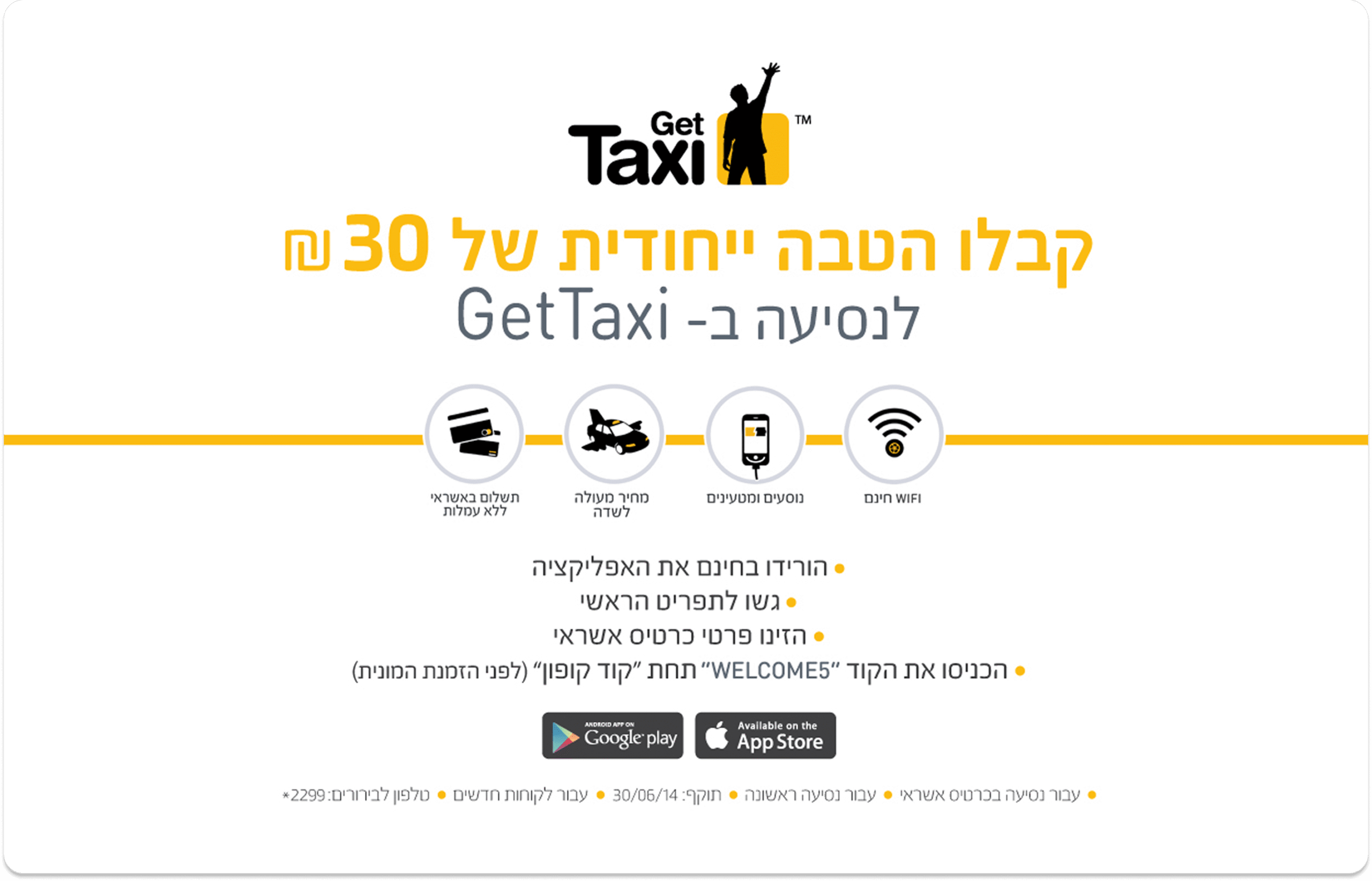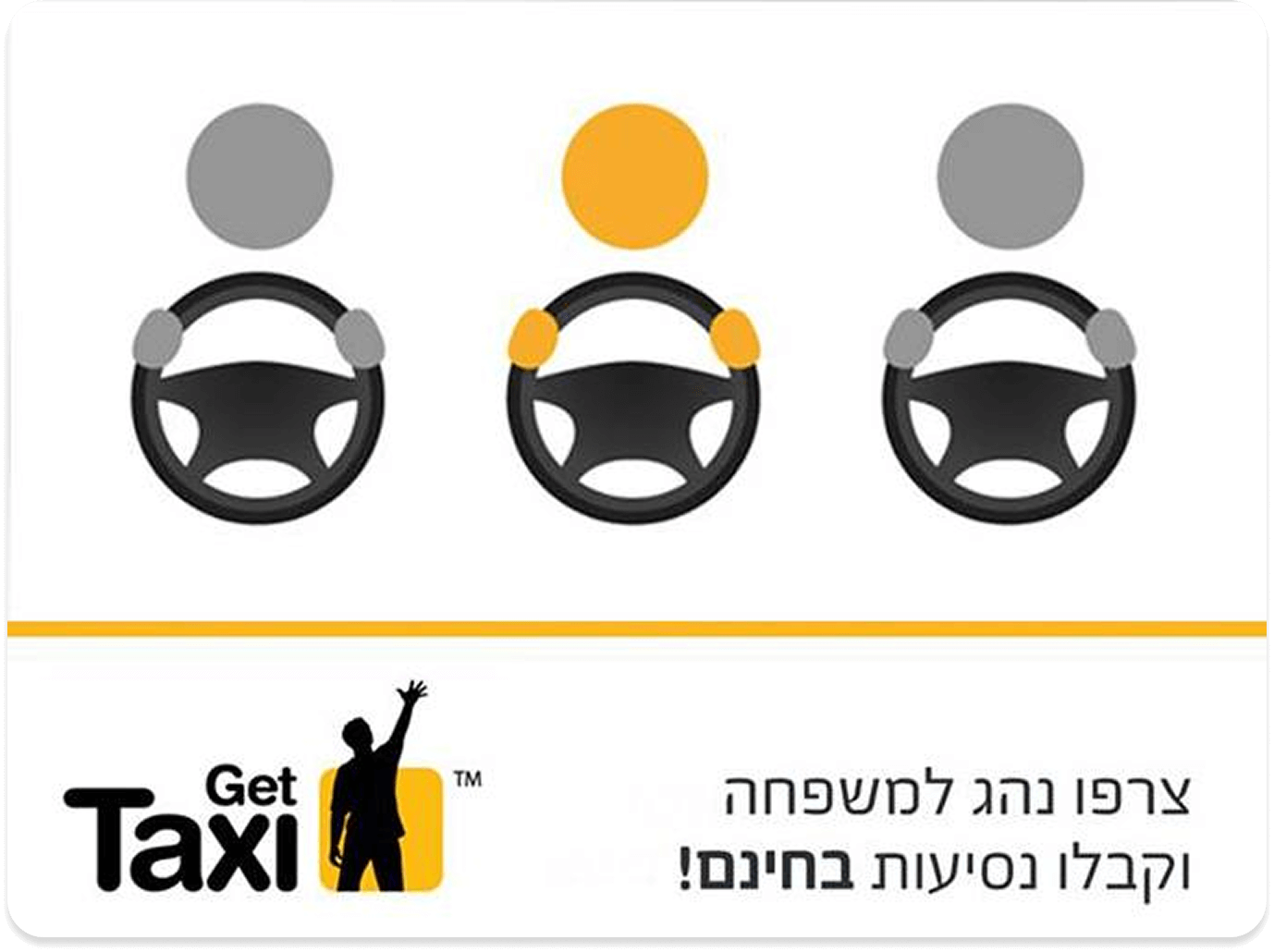 During the initial launch of GetTaxi in the Israeli market, we created a strong, bold, and clean branding designed to make the service unforgettable. The dominant colors yellow and black provided clear, powerful, and immediate visibility across all user touchpoints.