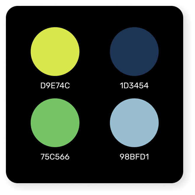 The color palette is inspired by nature and the surroundings: sky blue, sunny yellow, Carmel green and deep blue. It reinforces the brand and atmosphere, connects to open spaces and nature, and provides a clear, precise visual presence.