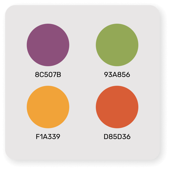 Warm shades of green, purple, orange, and red give each area a unique identity while keeping the site clean and vibrant.