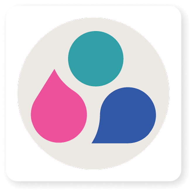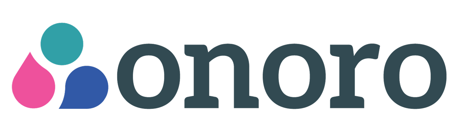 The Onoro logo features an icon comprised of three interconnected elements. The two lower drops (Pink for the worker and blue for the employer) subtly suggest overlapping speech bubbles, emphasizing clear communication and the exchange of needs.
