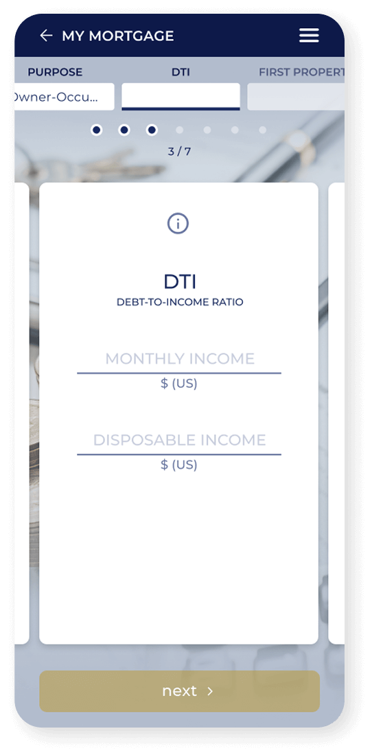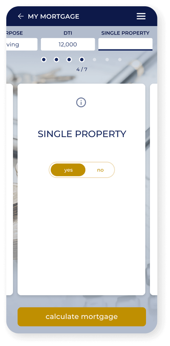 Breaks the mortgage process into a simple, 7-step guided questionnaire, taking users from input to result effortlessly.