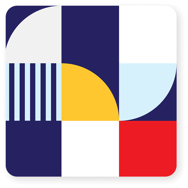Simple, foundational graphic shapes based on circles and squares were used to create a playful puzzle, symbolizing sophistication and engagement