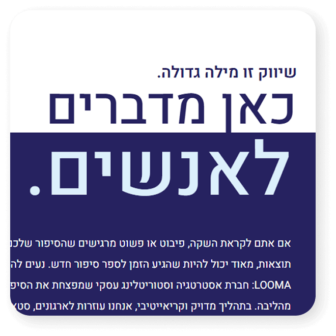 Looma works with organizations, startups, management teams, and internal teams during periods of growth and change. They specialize in providing comprehensive solutions underpinned by a unified and strong marketing strategy.